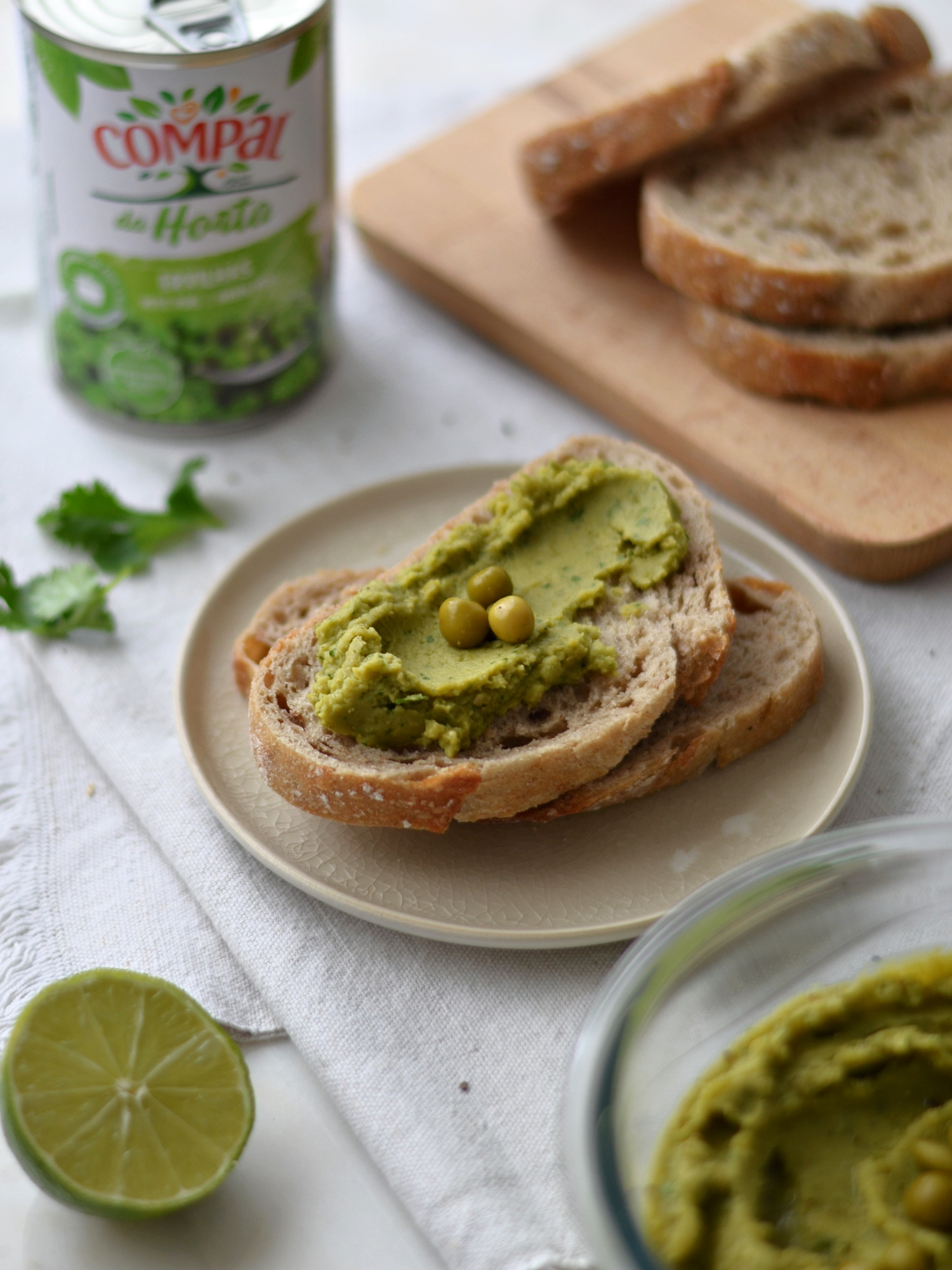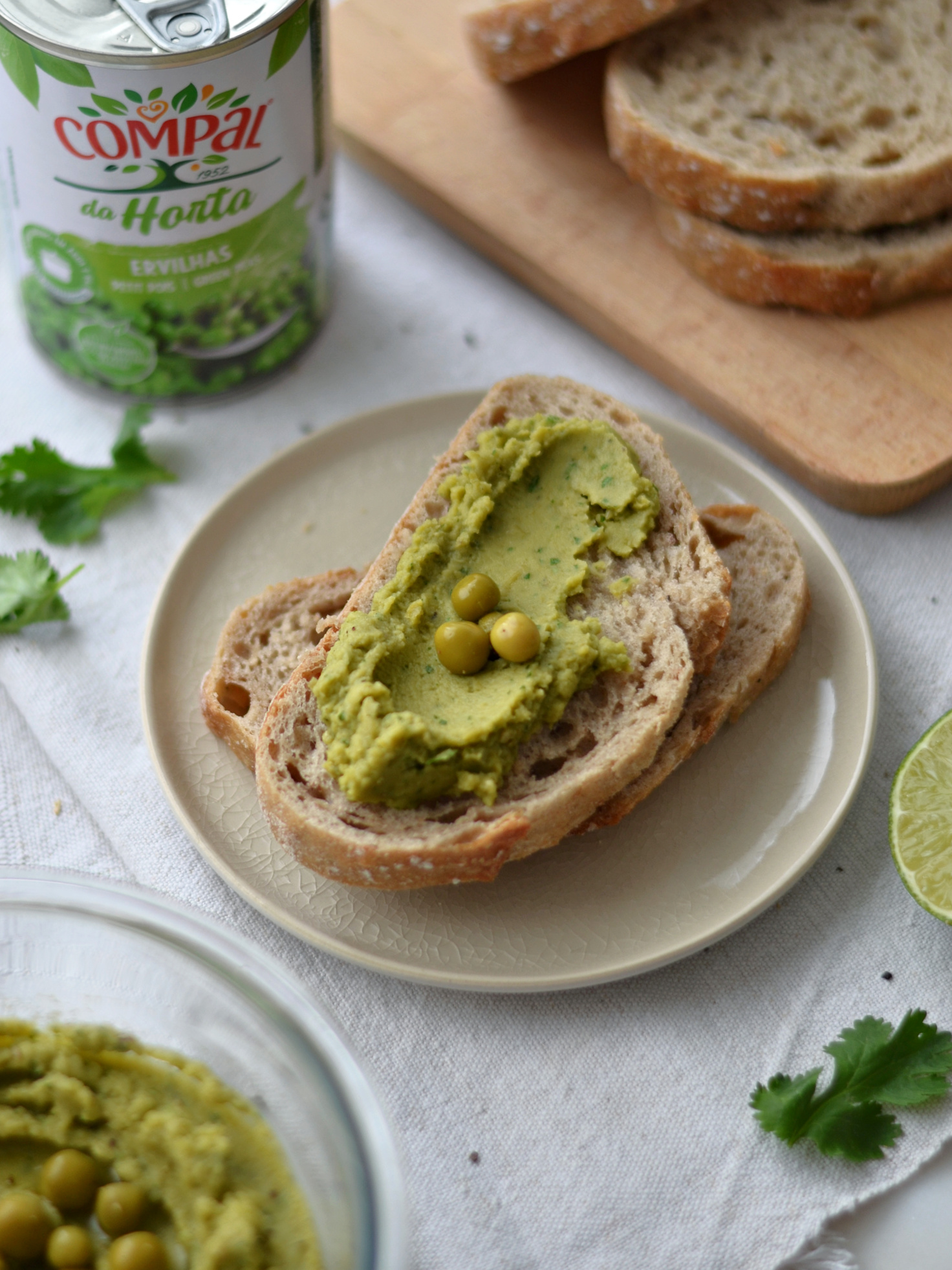 • Servir a pasta com pão de cereais, tostas ou gressinos, guarnecida com 1 colher de sobremesa de azeite, coentros picados, e as ervilhas cozidas Compal da Horta.